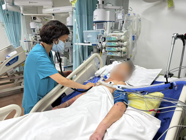 一名51岁男子因车祸伤致严重的创伤性湿肺,多发肋骨骨折、胸椎骨折、腰椎骨折、肝破裂出血、多器官功能障碍,在生命岌岌可危的情况下紧急转至我院ICU。在胡振杰主任的带领下,进行全科教授查房,制定最优救治方案。春节期间,ICU 实行专人值守、全程保障,从呼吸机精细管理、俯卧位通气规范实施,到血液净化精准治疗、感染防控严密落实,每一个救治环节、每一处护理细节,都在昼夜不停的重症病房里不折不扣执行。